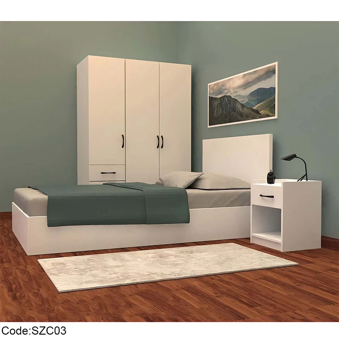 إذا كنتم تفضلون حلاً شاملاً، فغرفة SZC10 تأتي بأربع قطع أساسية: سرير، دولاب، كومودين، ووحدة تخزين إضافية. تعتمد بشكل كامل على خشب MDF والكونتر، ما يمنحها ثباتًا طويل الأمد. تتوفر بألوان هادئة تَبعث الطمأنينة في أجواء الغرفة، مع مساحات تخزين واسعة لتنظيم حاجيات الأطفال وسهولة تامة في التنظيف والصيانة. يرافق هذه الغرفة ضمان طويل يضفي مزيدًا من الطمأنينة على العائلات.