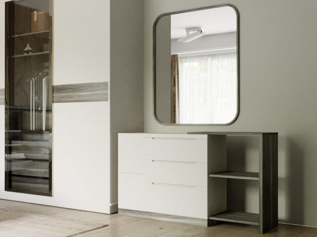 - التسريحة مع المرايا: العرض 80 سم -العمق 40 سم – الارتفاع 150 سم