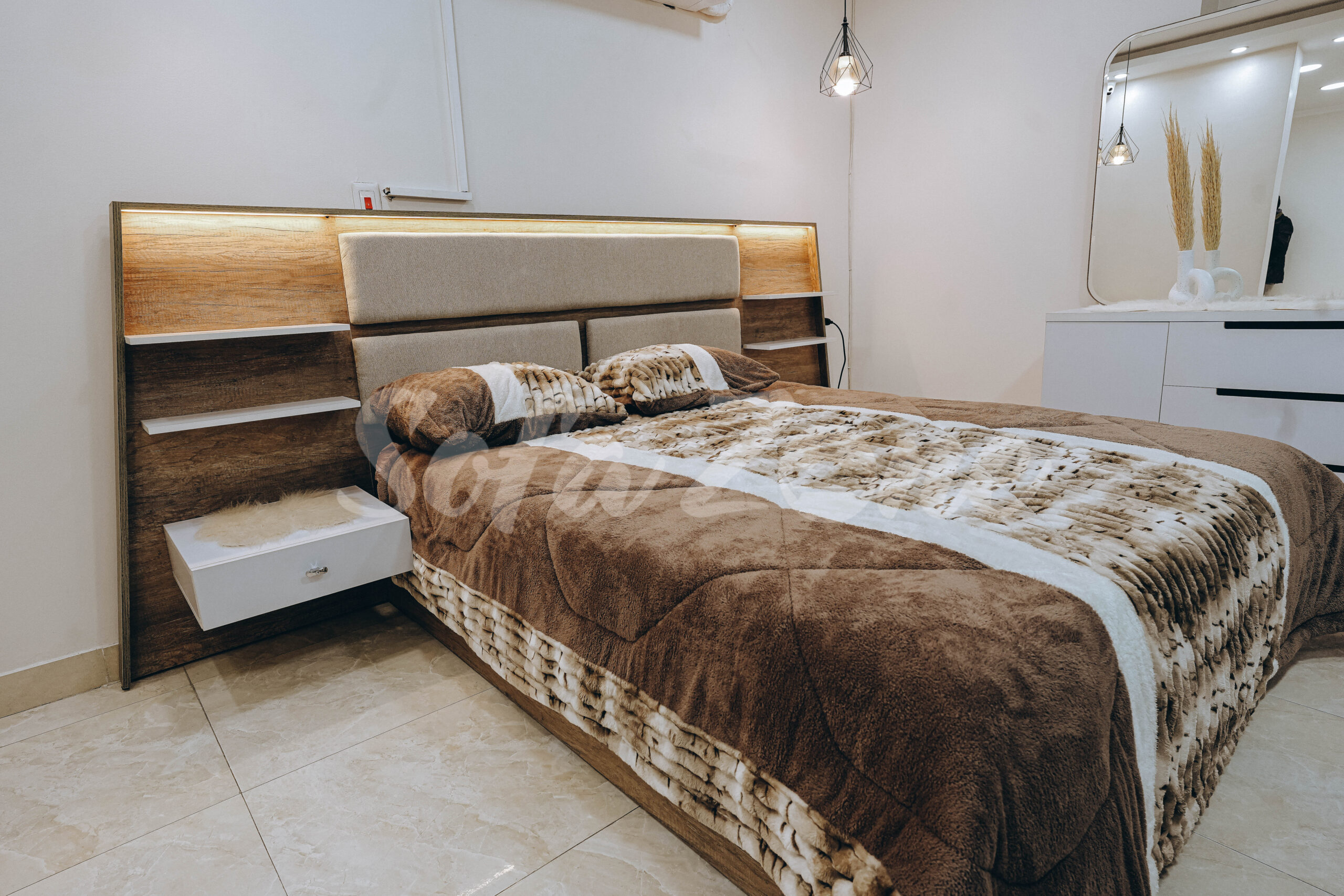 عدد القطع 5 ( سرير + دولاب + 2 كومود + تسريحه )