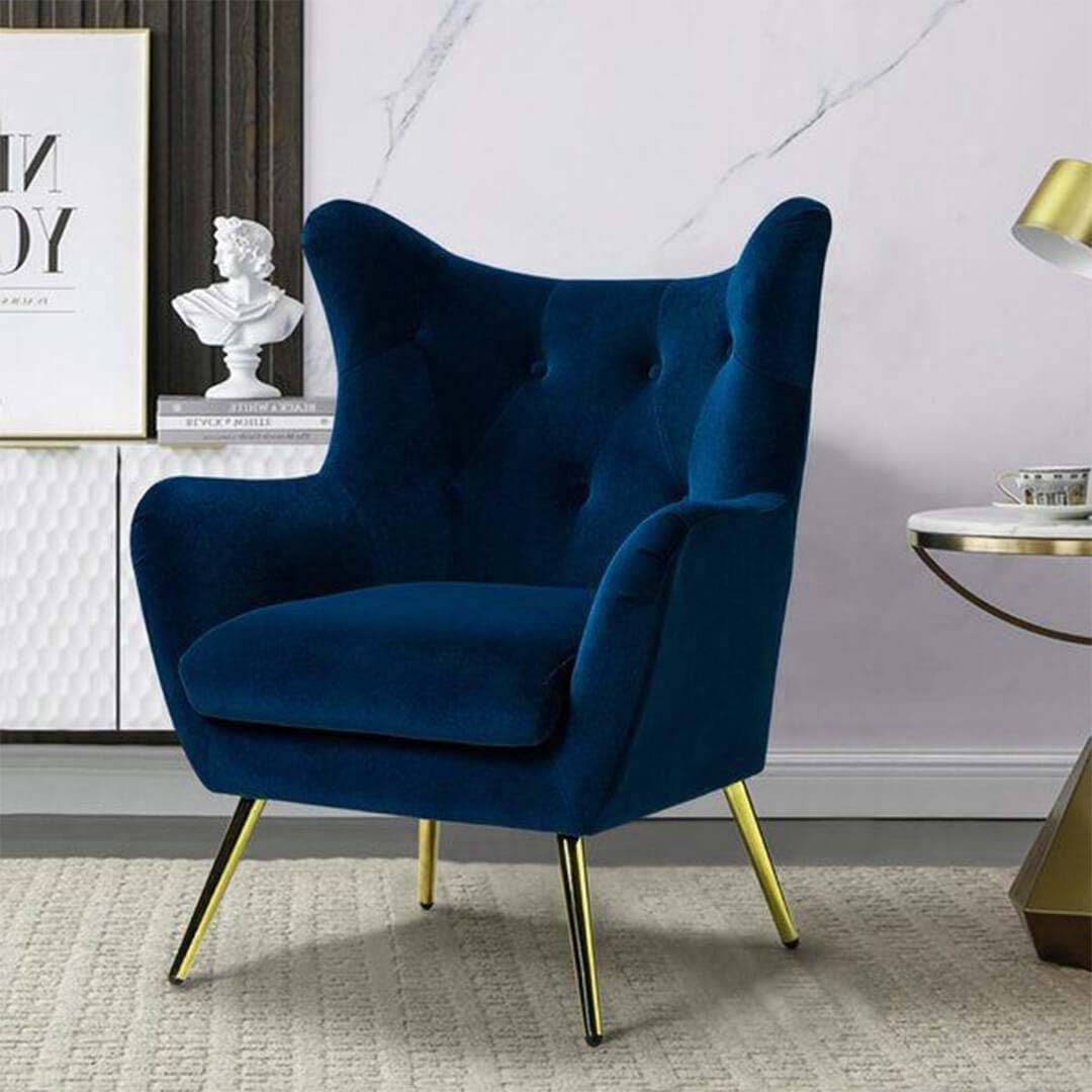 باللون الكحلي الجذاب يضفي هذا الكرسي لمسة من الجمال والجاذبية على أي مكان توضع فيه. تصميم الكابتونيه يضيف لمسة من الأناقة والفخامة التي تبرز جمالية المكان.